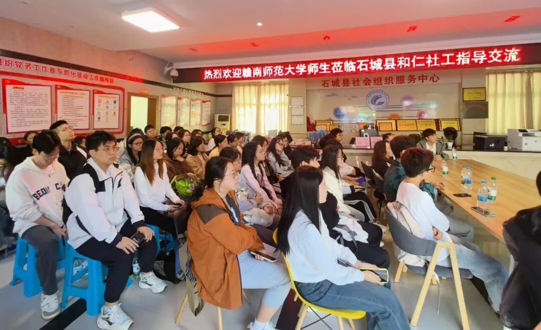 为深化校社合作,共育社工人才,10月26日,石城县和仁公益社会工作服务中心,作为赣南师范大学社会工作专业的实践教学基地,荣幸地迎来了该校经济管理与法学学院社会工作专业的四十多名师生,本次交流活动不仅包含机构本部的座谈分享,并安排了壹基金儿童服务站小手牵银发项目·铜锣湾社区站点的实地参访,为同学们提供了一场理论与实务深度融合的“现场教学”。
