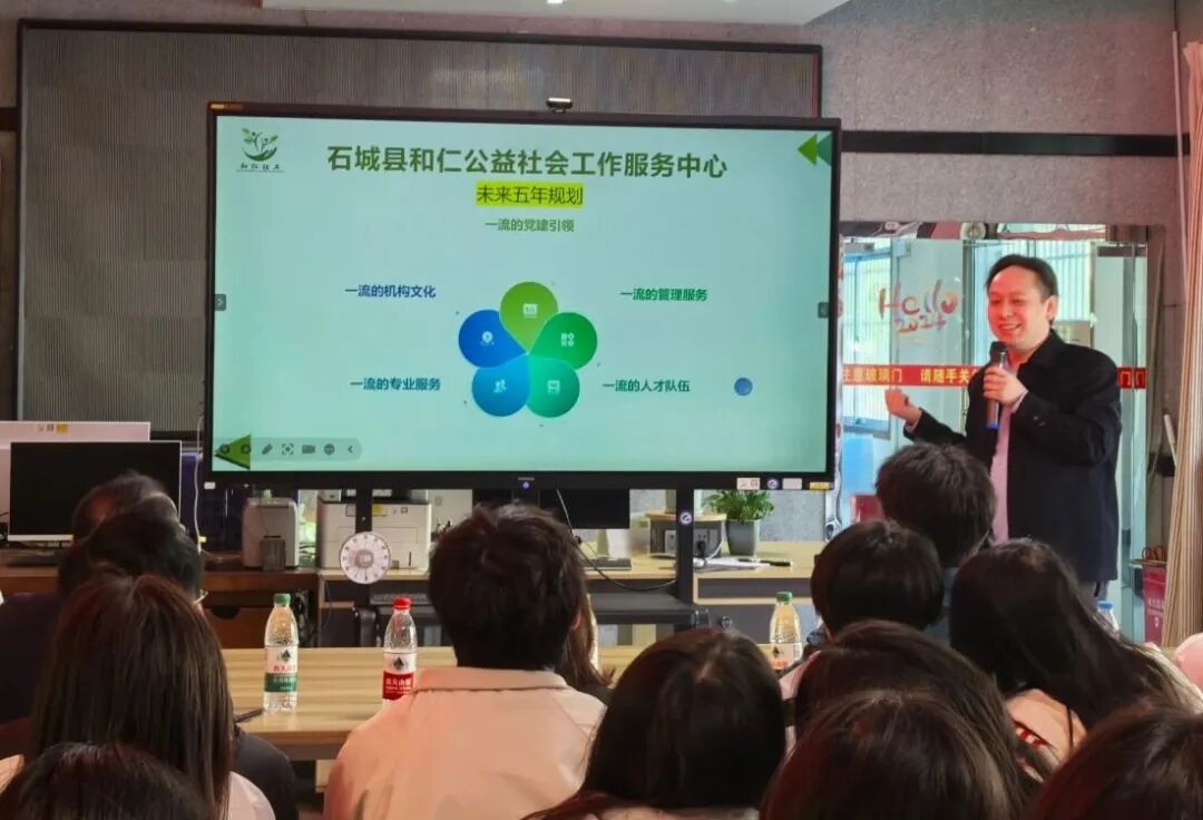 活动伊始,和仁社工负责人对师生们的到来致以热烈欢迎,并以“扎根石城、以人为本”的主题进行了分享。系统介绍了和仁社工扎根石城、服务本土的发展历程与“最有利于服务对象”的服务理念,重点展示了在民政服务站建设、社区治理、为老服务、儿童关爱、司法社工等领域的核心项目与实务模式。通过呈现真实的项目案例与服务成效,力求让同学们直观感受一线社会工作的专业价值与实践魅力。