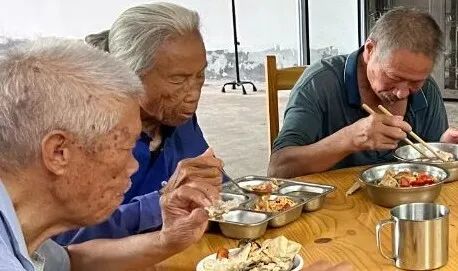 游戏环节结束后,老人们前往餐厅共享团圆午餐。老人们围坐同食、唠家常、互致问候,餐厅里洋溢着团圆幸福的节日氛围。