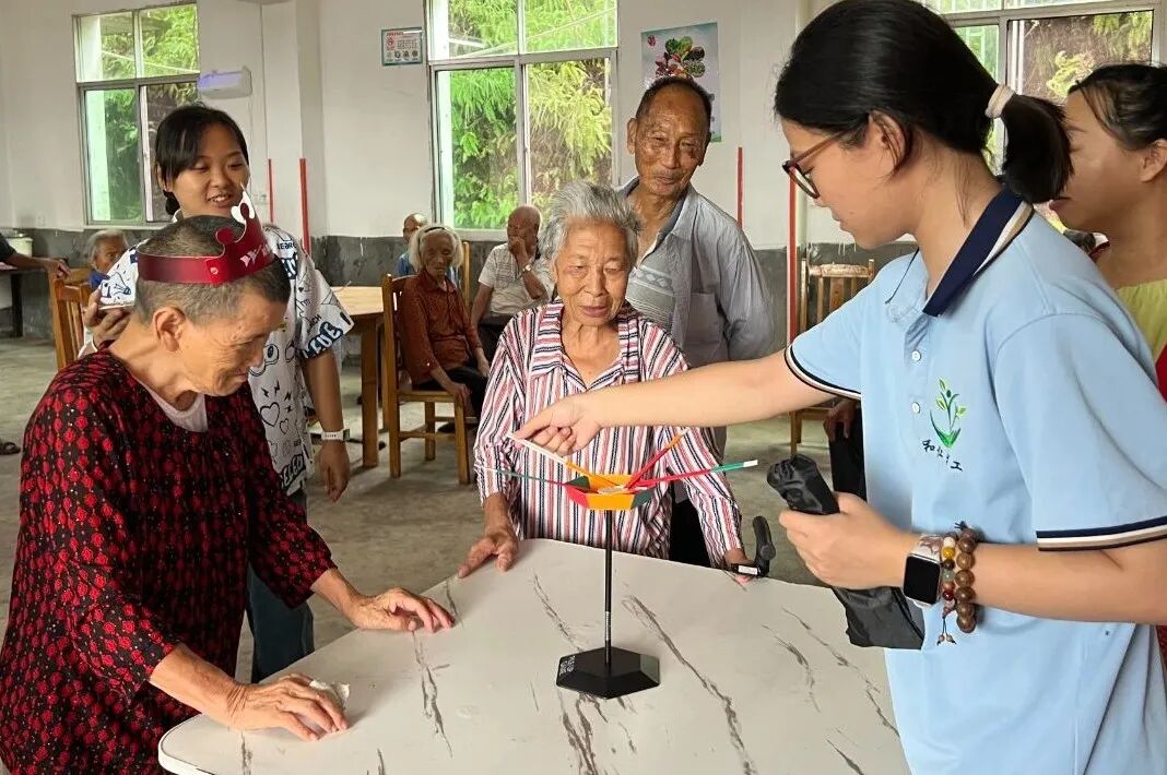 活动伊始,敬老院活动室内欢声笑语不断。在社工的带领下,趣味游戏会拉开序幕,设置了“投壶纳福”“夹乒乓球挑战”“扣签游戏”等适合长者的怀旧项目。投壶区,老人持箭瞄准投入引喝彩;夹乒乓球考验手眼协调,众人专注传球;扣签游戏勾起童年回忆,简单道具带来欢乐。社工全程陪伴协助,确保每位老人都能参与享趣。