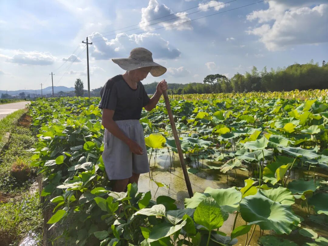 晚年的温高田在莲子地里干活
