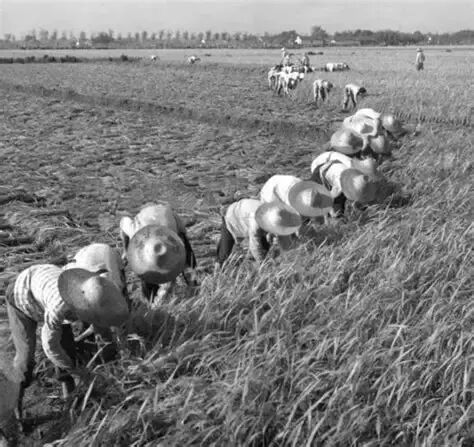 上世纪农民收水稻图片(图片来源于网络)