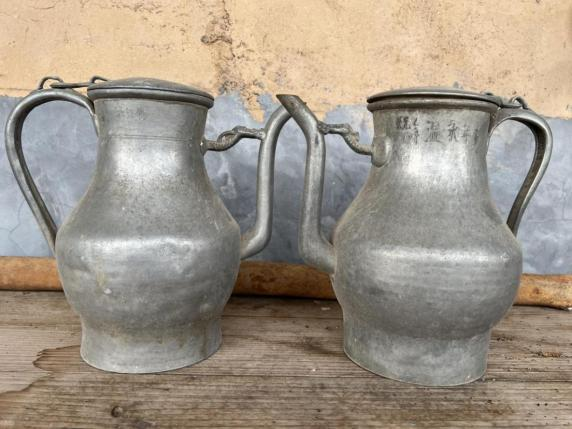 右边的是光旭父母留给他的锡酒壶,左边的是光旭后来自己定制的铝酒壶