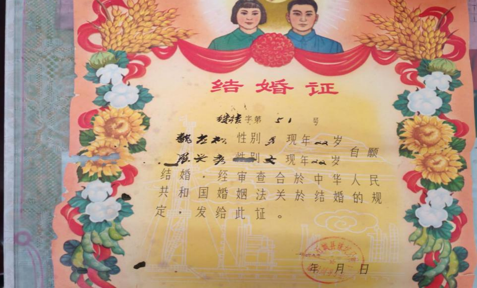 由于当时政策禁止铺张浪费,他们的婚事一切从简。彩礼仅有一身灯芯绒衣服、一些花布料和一个红漆木箱子,嫁妆则是脸盆和布鞋,按照当时的规矩,女方家人要把女方送到男方家中举行婚礼仪式。结婚当天,家中亲戚凑了两桌饭菜,炒鸡蛋和炖白菜粉条便是这场婚礼的全部菜肴。