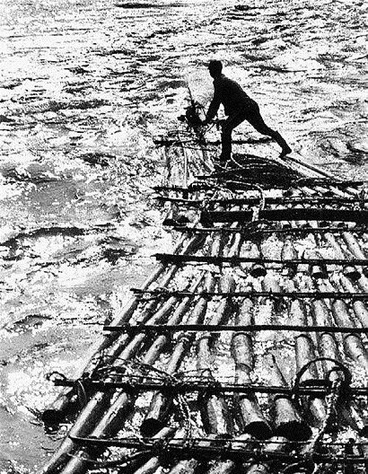 以前做房子,需要要从赣州买树料运回石城,那时没有车也没有路,只能走水运。工人会把木料用竹篾绳扎成排,连接成几里路长的大排。排上设有绞车,排首前有一只“毛船”(即大木船)用来导航。船上有一只掌扇,呈“中”状,用一根一百多米长的竹篾绳,一头绑在掌扇上的把位,一头绑在绞车上,当木排航行到河流岔道时,毛船先行,然后将掌扇放下水(起到定向作用),排工们在排上推动绞车前进。