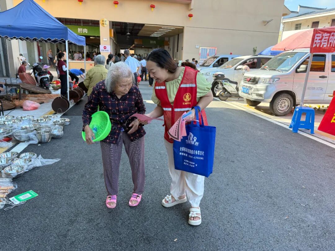 为深入贯彻落实积极应对人口老龄化国家战略,切实提升老年人对惠民政策的知晓率和满意度。10月15日,在石城县民政局的指导下,石城县和睦社工联合珠坑乡民政服务站在珠坑乡边贸市场开展“老年人优惠政策宣传”主题活动。