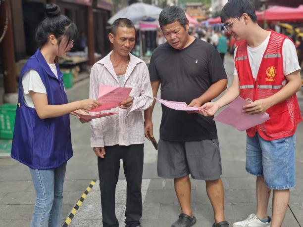 活动当天,工作人员提前准备了内容详实、设计清晰的宣传单页,全面涵盖申请条件、办理流程、所需材料及常见问题解答。上午9时,社工们在丰山街主要路口设立宣传点,吸引众多居民驻足咨询。他们不仅主动发放宣传资料,更耐心细致地为每位居民解读政策细节,特别是救助条件与办理要求等关键内容。面对行动不便或听力较弱的老人,社工主动走近、俯身沟通,用通俗易懂的语言逐一讲解,并提供一对一协助,确保老人们听得懂、会申请。