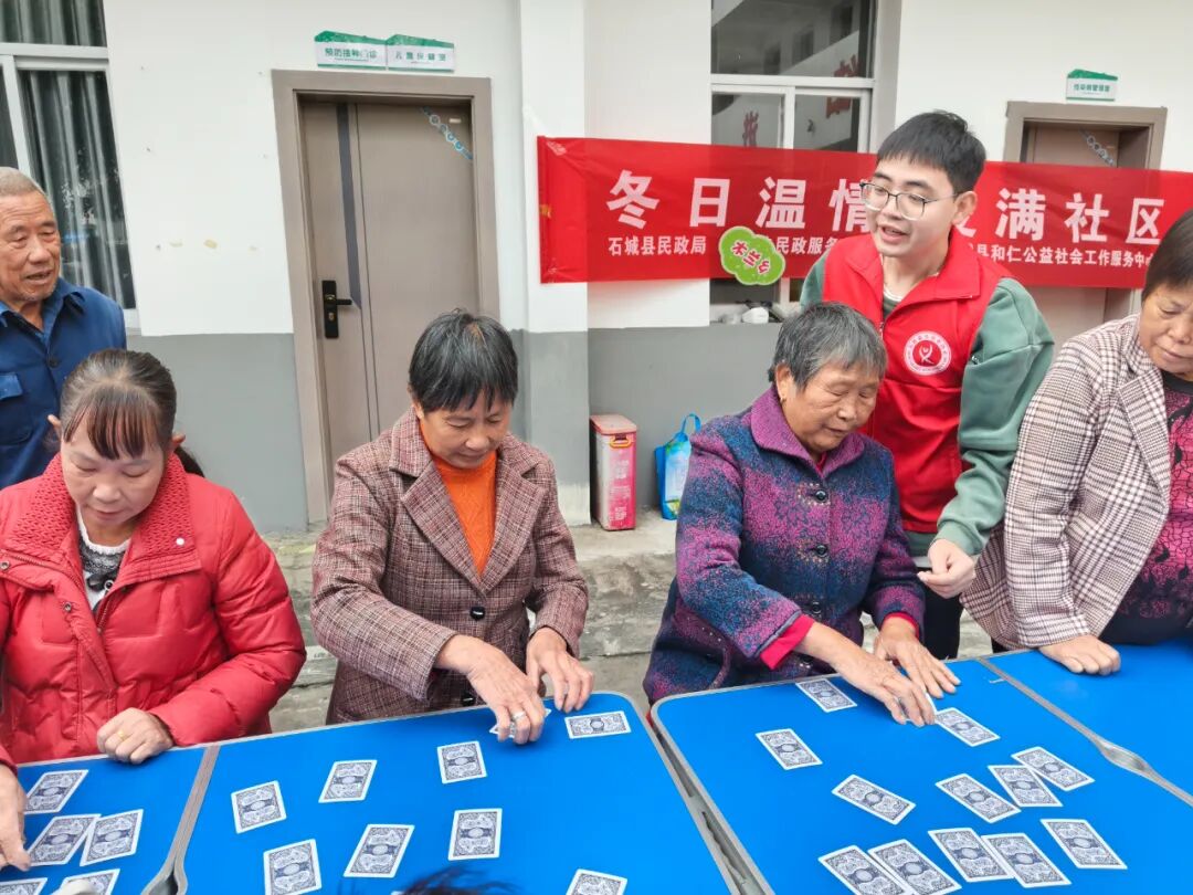 健康环节结束后,活动进入了动静结合、智趣盎然的“趣味游戏嘉年华”。现场欢声笑语不断,经典怀旧的“套圈游戏” 前围满了人,老人们全神贯注,瞄准、投掷,每当有物品被套中,便引来一阵喝彩,简单的游戏带来了最纯粹的快乐。另一侧,新颖的“达芬奇密码” 游戏则考验着老人们的记忆力与反应速度。四人一组,需在随机排列的卡牌中依次找出1至13的数字,场面紧张而有趣。参赛者凝神思考,围观者暗自加油,在脑力激荡中充分活跃了思维。