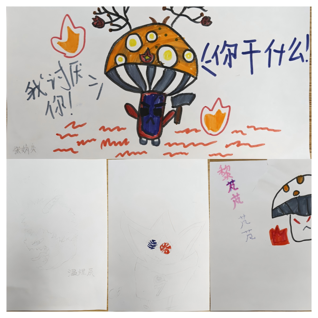 活动最后,儿童们先用彩笔描绘情绪小怪兽:愤怒张牙舞爪浑身冒火,悲伤耷拉脑袋眼角挂泪,快乐笑容灿烂五彩环绕,还分享特点含义;接着用积木拼搭出形态色彩各异的小怪兽;完成后分享作品情绪及背后故事,深化情绪认知。