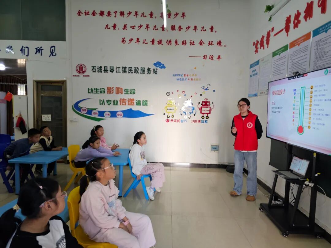 活动伊始,社工老师借助PPT讲解了情绪知识。随后的“情绪节拍”环节,儿童们随情绪词语拍手跺脚,感知情绪分类;“情绪温度计”讨论时,大家踊跃分享心情分数及原因,学会关注内心情绪;情绪表达讨论环节,儿童们积极交流,明确了开心、悲伤、害怕时各自健康的表达方式。