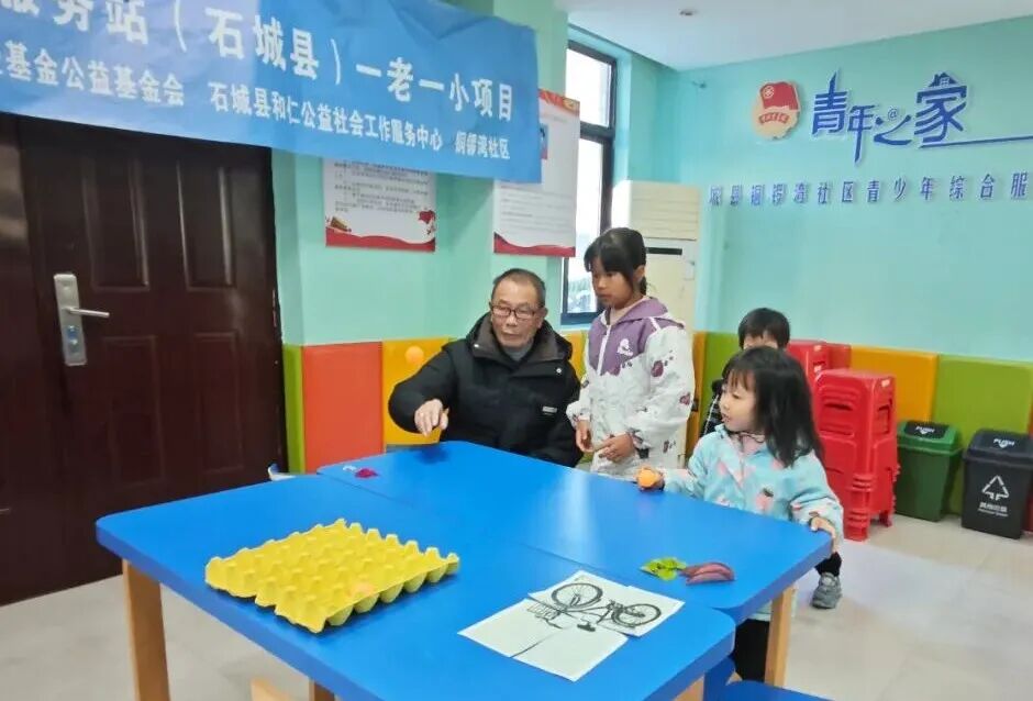 在老龄化与少子化并行的当下,代际之间的情感隔阂与认知差异逐渐成为社区治理中亟待关注的课题。为打破年龄界限,搭建老年居民与儿童之间的情感纽带,2025年11月23日,在深圳壹基金公益基金会、阿里巴巴公益的支持下,在石城县委社会工作部、县民政局的指导下,石城县和仁公益社会工作服务中心(简称:和仁社工)在壹基金儿童服务站(小手牵银发项目)铜锣湾社区站点开展了以“叶韵书情·跨代共绘时光签”主题的代际融合活动。