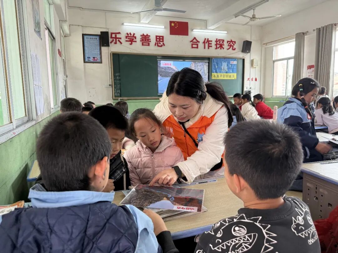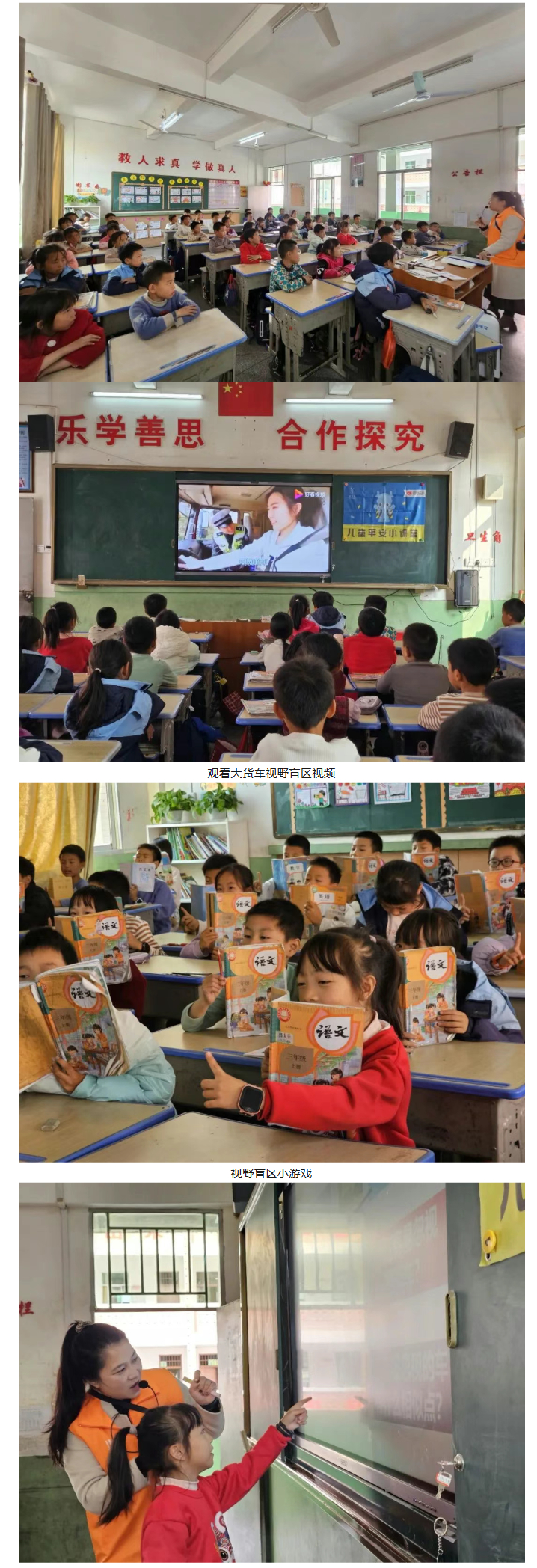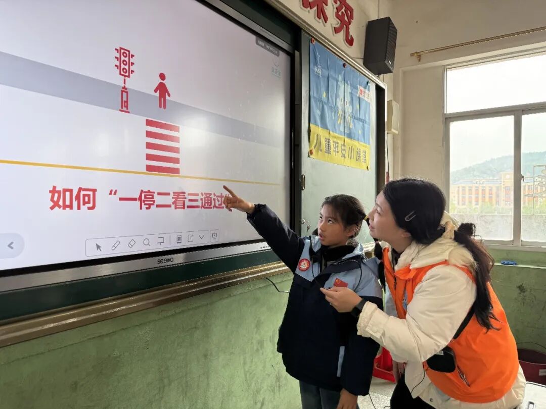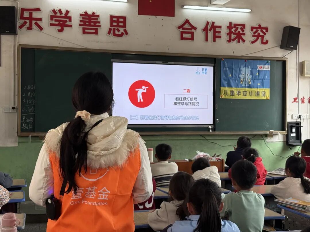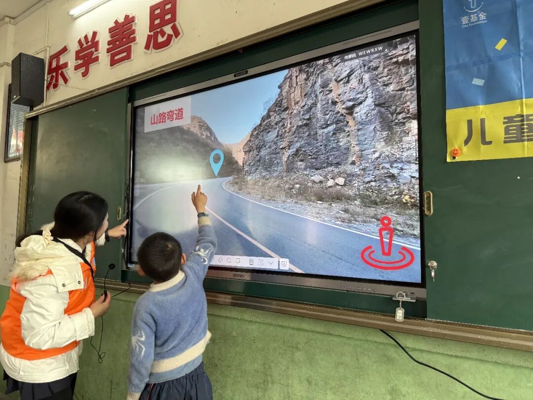在课堂上,志愿者讲师带领儿童一起认识道路交通中的危险,并学会步行时与乘车时如何安全出行。
