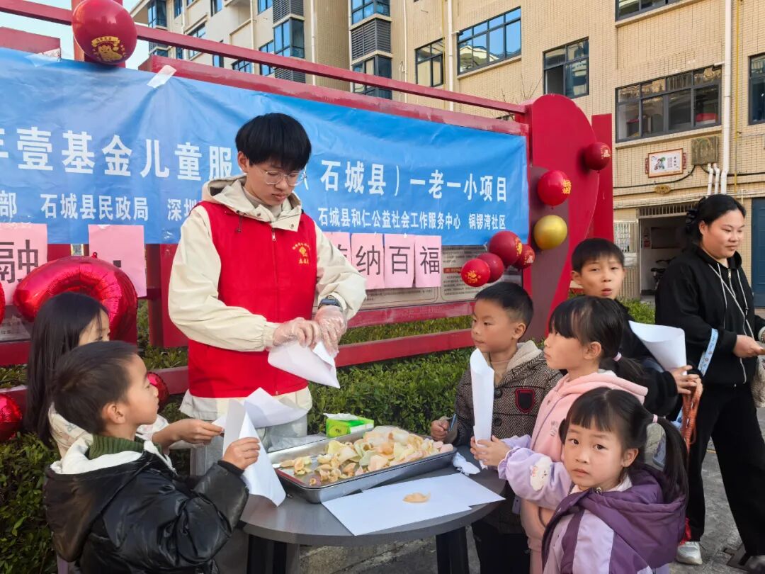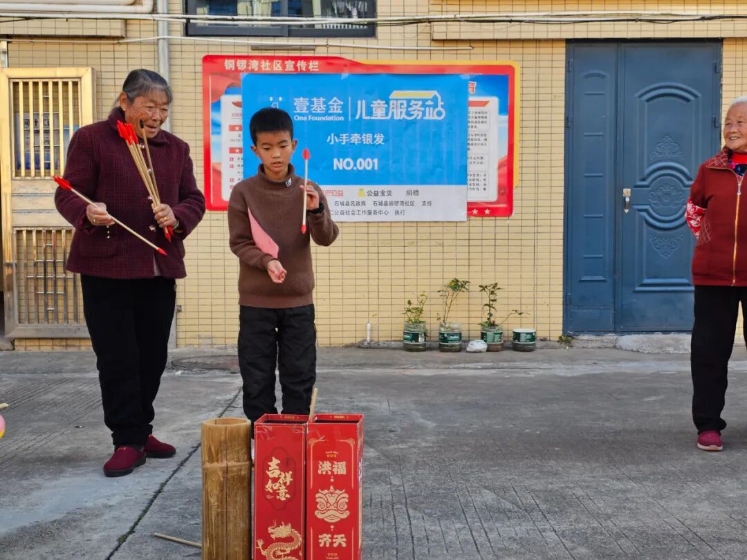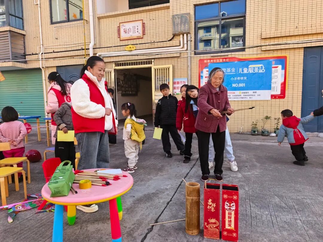 12月28日,在壹基金的支持下,在石城县委社会工作部、县民政局的指导下,石城县和仁公益社会工作服务中心(简称:和仁社工)在铜锣湾儿童服务站开展“代际同游·元旦纳福 ”主题活动。儿童与老人在趣味摊位间穿梭游玩,用笑声填满了今日的温暖时光。