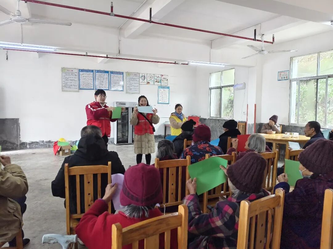 活动现场暖意融融,趣味十足。首个环节“齐挥彩纸”拉开了欢乐序幕,社工为每位老人发放了色彩鲜艳的卡纸,随着“上下左右”“抖动起来”的指令,老人们手持彩纸整齐行动,老人们脸上洋溢着孩童般的笑容,现场氛围瞬间活跃起来。