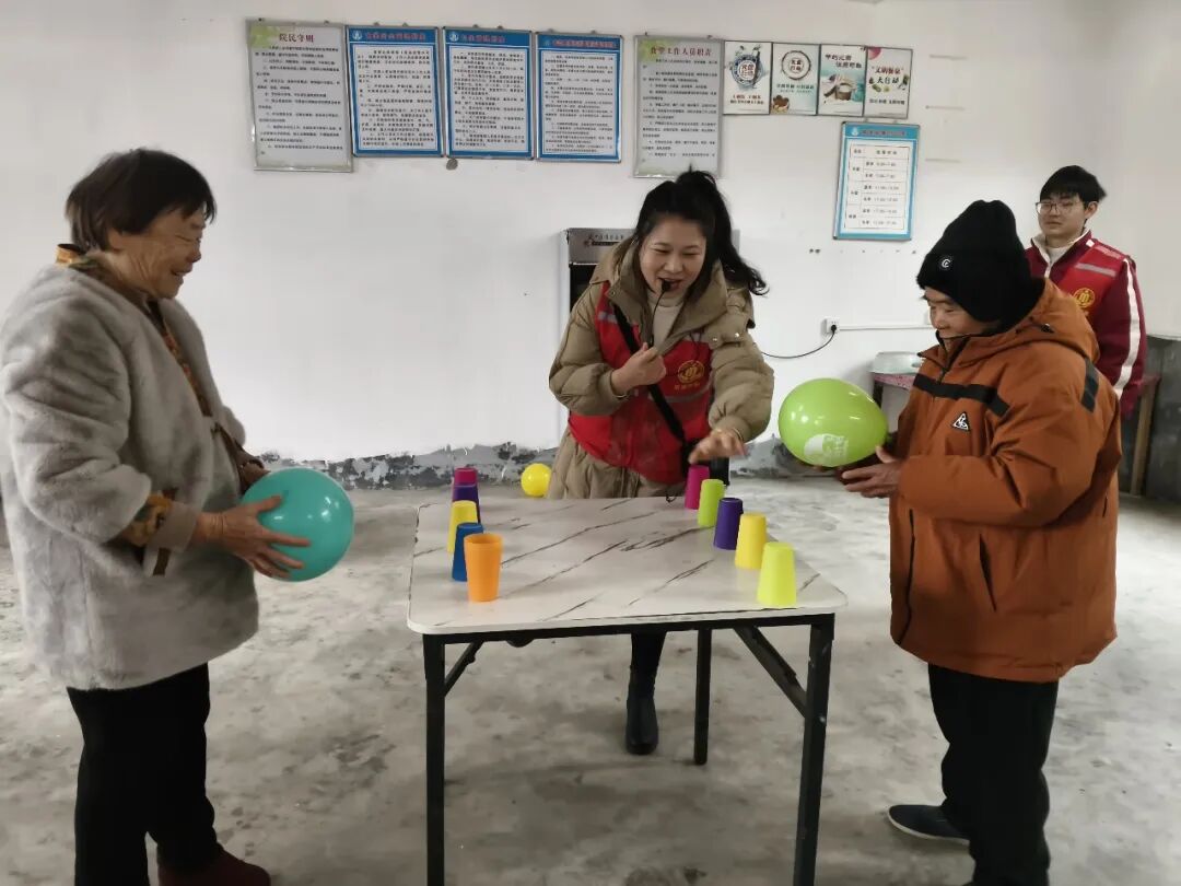 紧接着的“吹气球翻杯子”比赛将活动推向高潮。随着社工一声令下,大家各显神通,旁边的同伴们不断加油鼓劲,掌声、笑声此起彼伏。最终,率先完成全部翻杯任务的老人赢得了大家的阵阵喝彩。