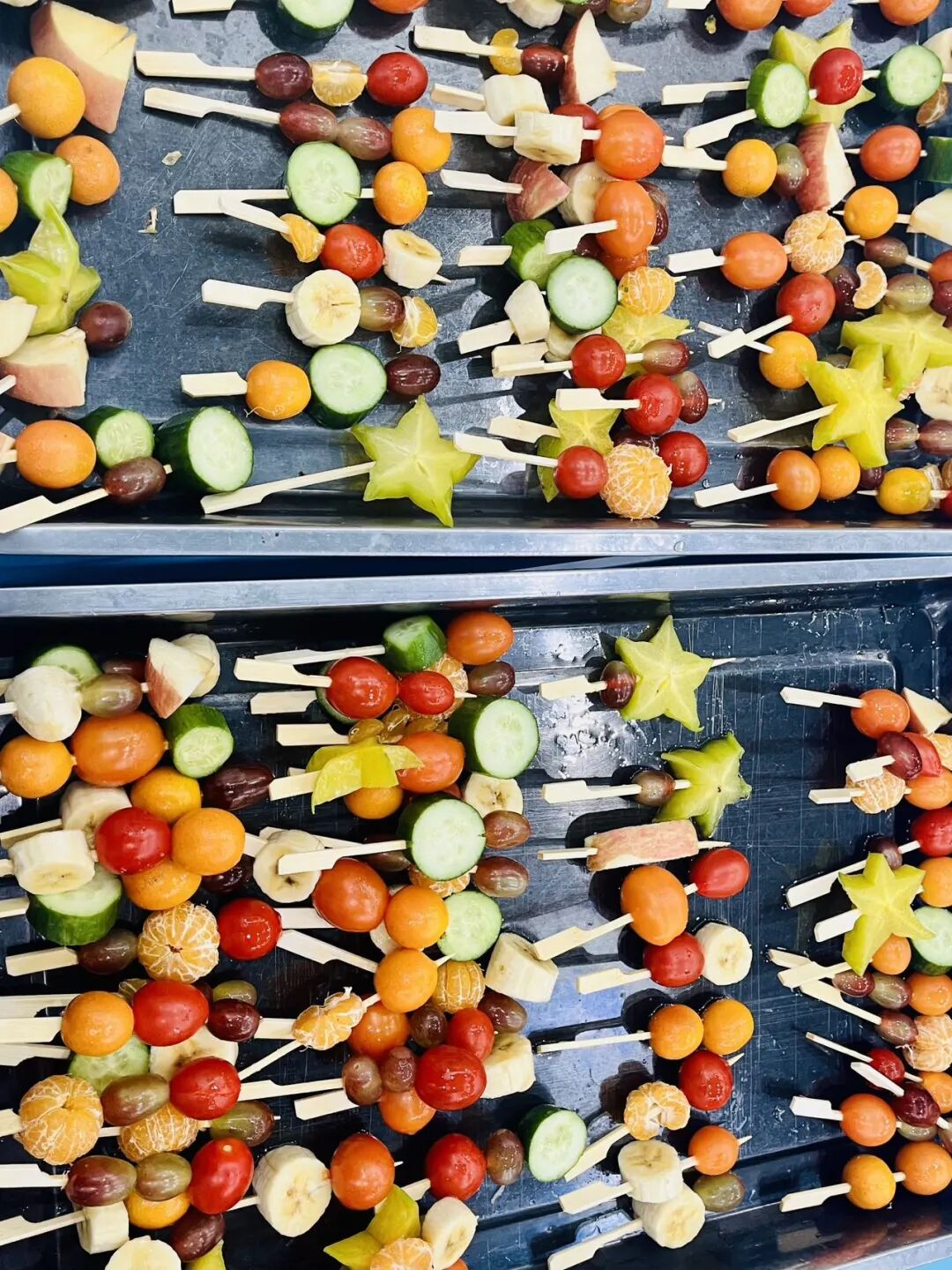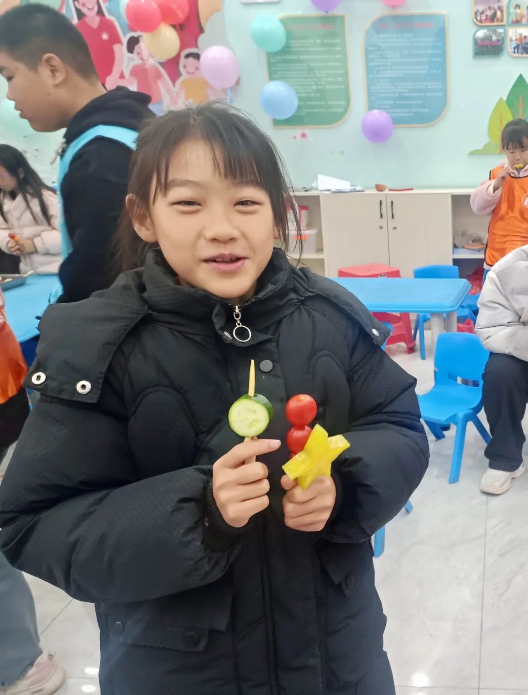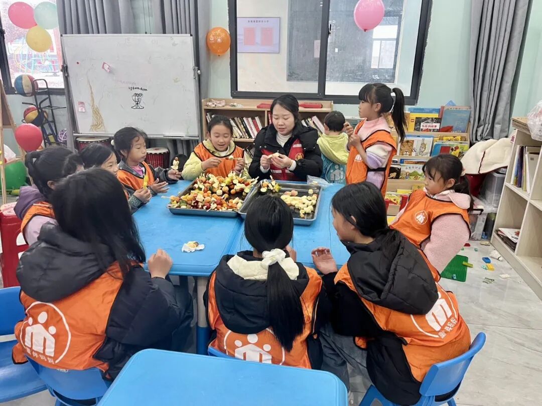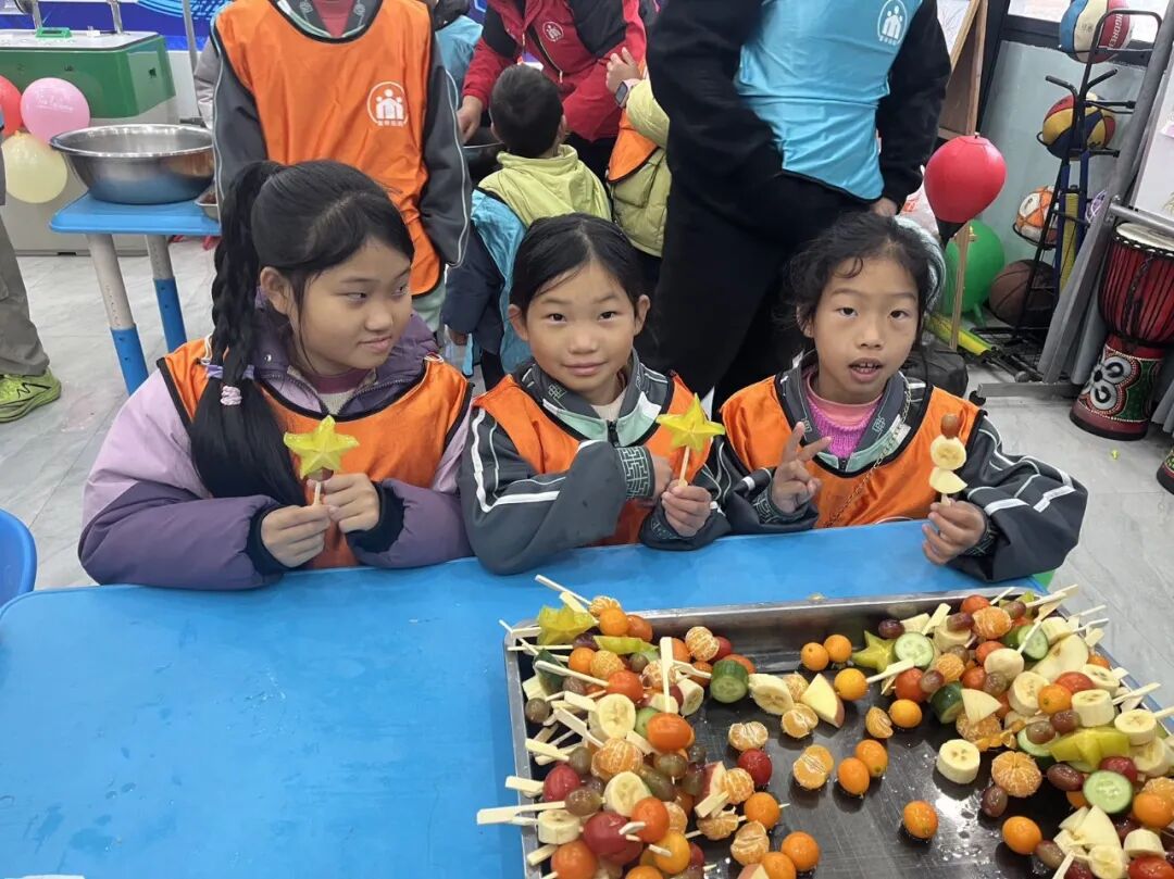 游戏过后,冰糖葫芦DIY正式开启。孩子们在社工的指导下清洗沥干水果,发挥创意串制专属水果串,个个兴致盎然。