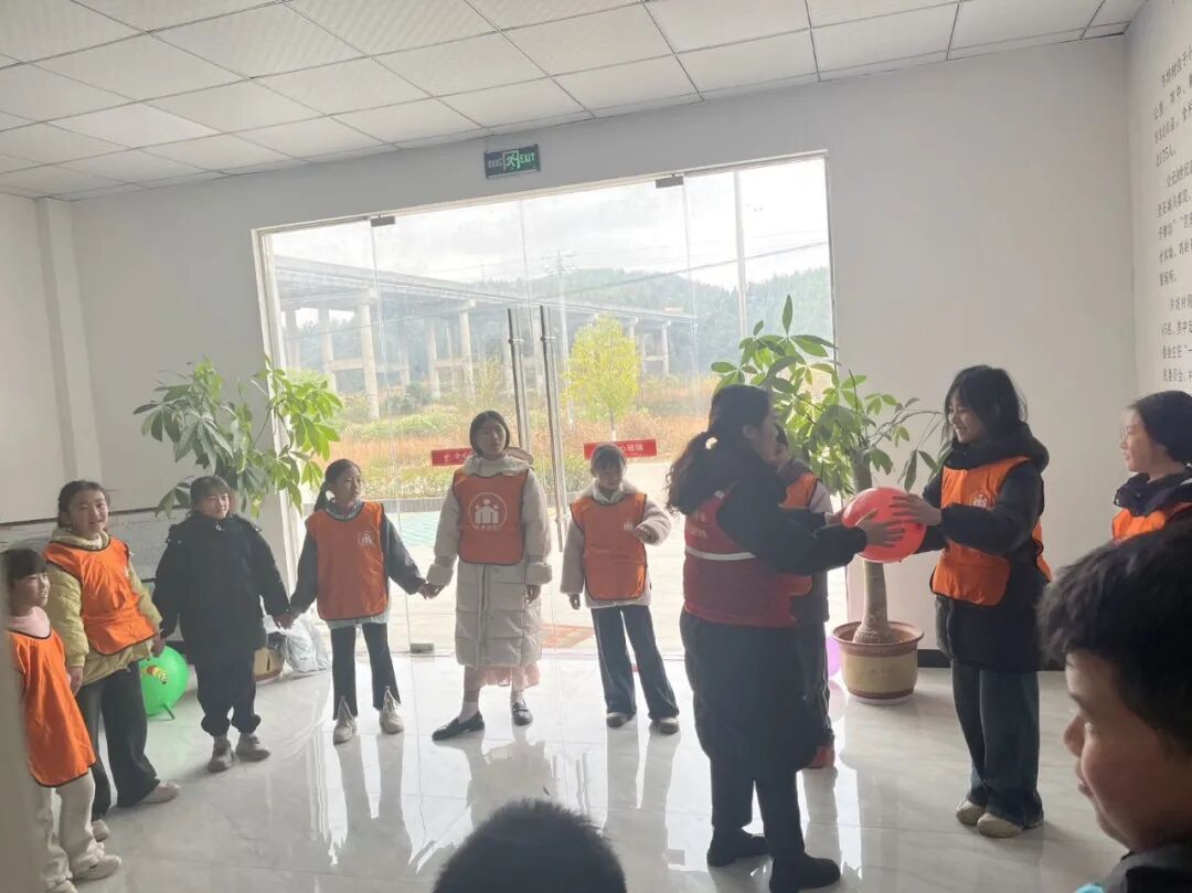 社工以热闹的传气球热身游戏迅速点燃氛围。孩子们围成圈,跟着社工的口令传递气球,口令停止时,拿到气球的小朋友站到圈中,或表演趣味节目,或诵读经典古诗,不仅锻炼了孩子们的表达能力,更拉近了彼此的距离。