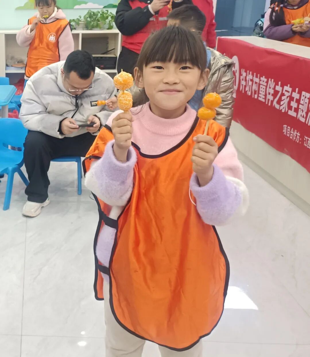 品尝着亲手制作的冰糖葫芦,孩子们脸上洋溢着幸福笑容,互相分享美味与喜悦,现场满是甜蜜气息。活动尾声,孩子们齐心协力收拾场地,许坊村的驻村干部还为每位孩子送上精心准备的元旦礼物。