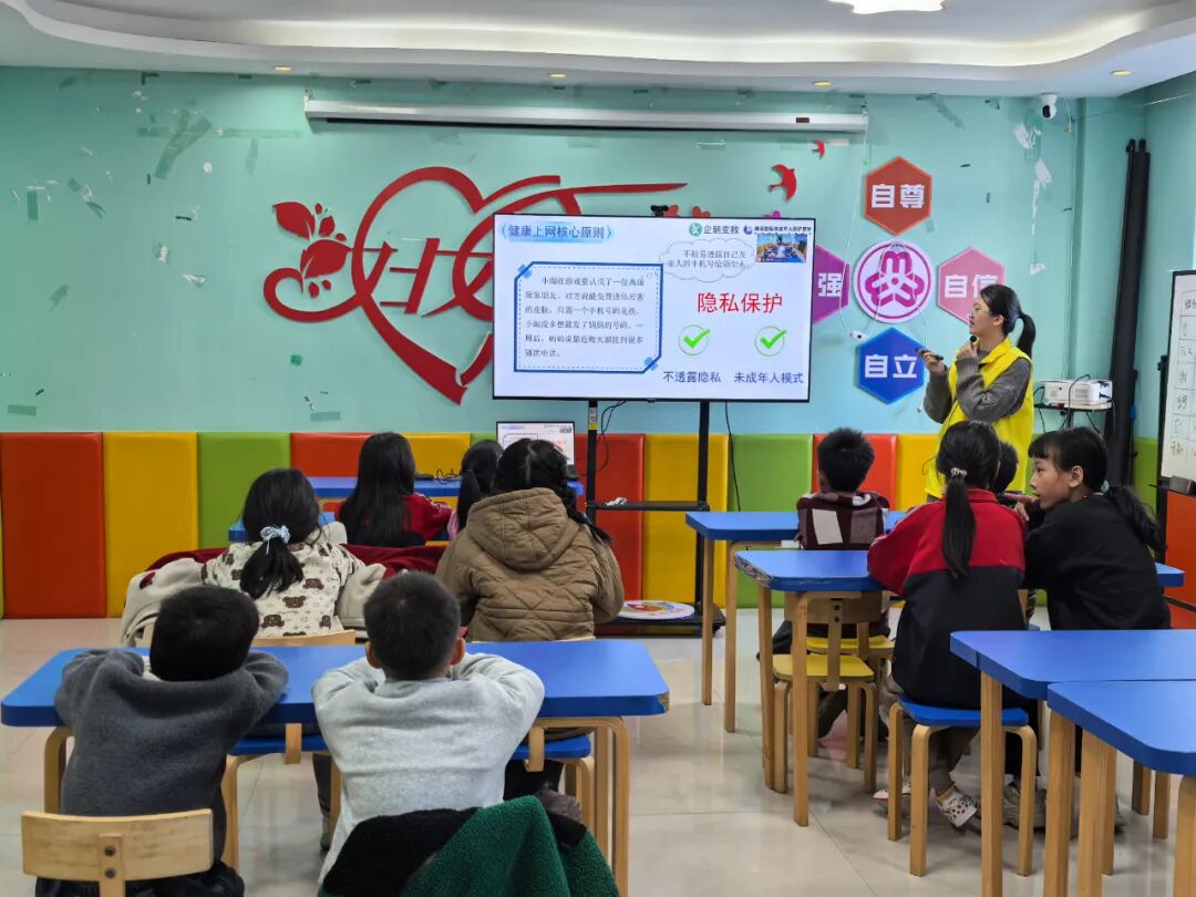 网络是一把“双刃剑”,教会儿童科学用网、养成健康习惯,是成长路上的重要一课。课堂上,我们教导儿童们建立对网络的科学认知:网络既能帮我们查阅资料、结识好友,也隐藏着虚假信息、过度沉迷等风险。我们鼓励大家在现实世界中收获快乐,让网络成为助力学习的得力伙伴。