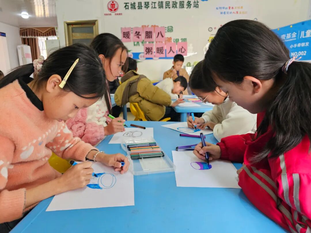孩子们与老人围绕“我眼中的腊八”提笔创作,色彩与线条勾勒出节日喜悦,用创意留住此刻温情,童叟相伴氛围感拉满。