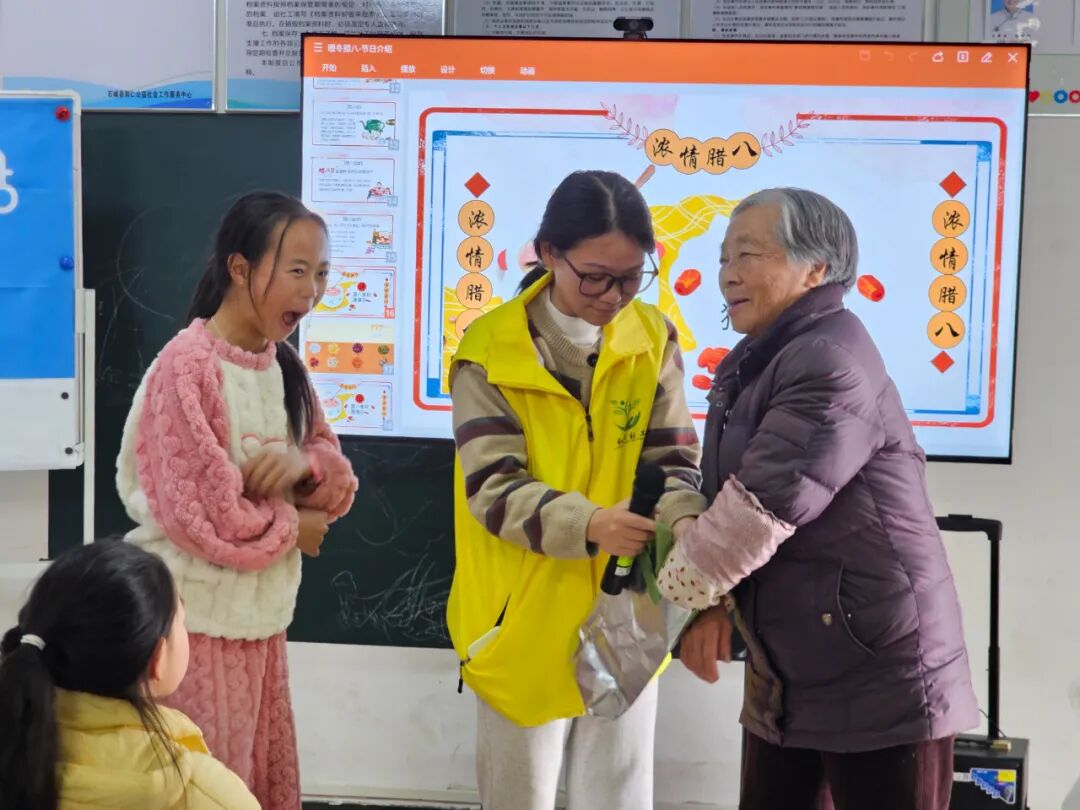 活动尾声,社工带着孩子们将富余的腊八粥打包,逐一送到广场上晒太阳的老人手中。一碗碗粥,承载着满满的善意,让这份暖意走出服务站,传递给更多人,温暖了寒风中的时光,也让这份腊八温情感染着身边每一位居民。