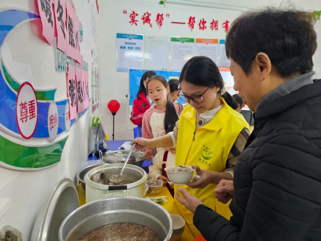 当一碗碗温热的腊八粥被送入大家嘴边时,软糯香甜萦绕舌尖。老少围坐共品美味,闲话家常,暖意从味蕾蔓延至心底,定格邻里相守的美好瞬间。