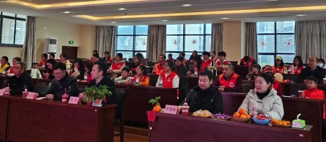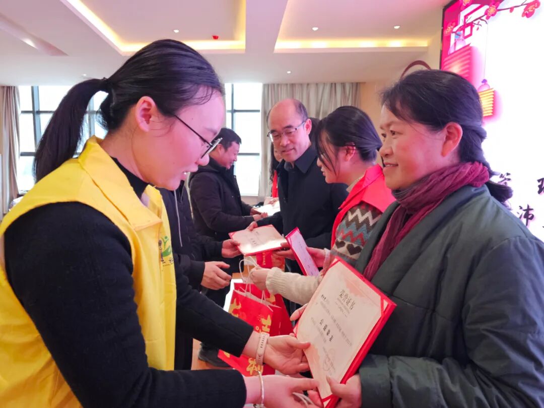 活动现场暖意融融,灯笼、拉旗等新年物料点缀其间,一份份伴手礼、表彰礼品整齐摆放,每一处细节都藏着满满的心意。