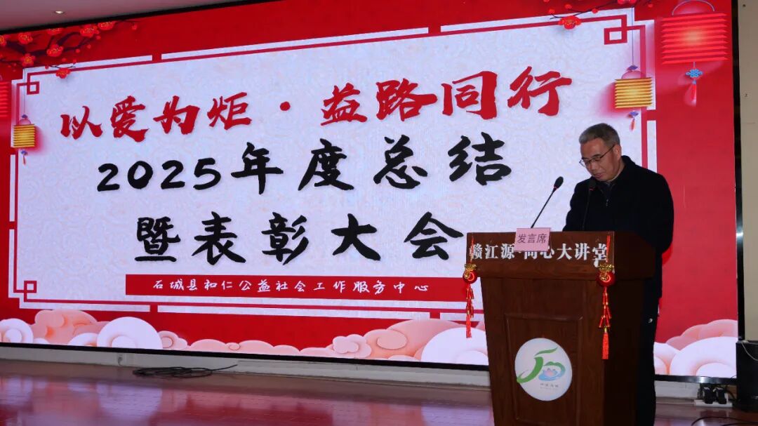 大会伊始,一段年度回顾视频缓缓播放,串联起2025年和仁社工扎根石城、服务群众的点点滴滴——陪伴困境儿童成长、关爱孤寡老人晚年、志愿者风雨坚守、爱心人士慷慨相助,每一个瞬间都温暖动人,每一份付出都值得铭记。