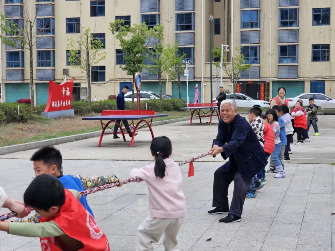 拔河比赛初始,廖爷爷还笑称这是“小孩的游戏”,但一旦绳索绷紧,他立刻化身最投入的“教练”和“后盾”,亲身示范如何发力,如何配合。孩子们的队伍因为有了“智慧爷爷”的加入而士气大振。赛后,廖爷爷成了最受欢迎的“明星”,孩子们争相邀请他加入自己的队伍,尊老与爱幼的情感在汗水和欢笑声中自然流淌。