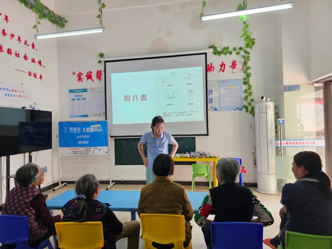 “测完血压,我们一起来活动一下筋骨,学一套简单实用的‘拍八虚’养生操!”在社工的带动下,现场气氛瞬间活跃起来。社工通过现场示范,引导老人们找到身体八个气血易淤堵的关节窝,并鼓励大家跟着节奏用空掌轻轻拍打。