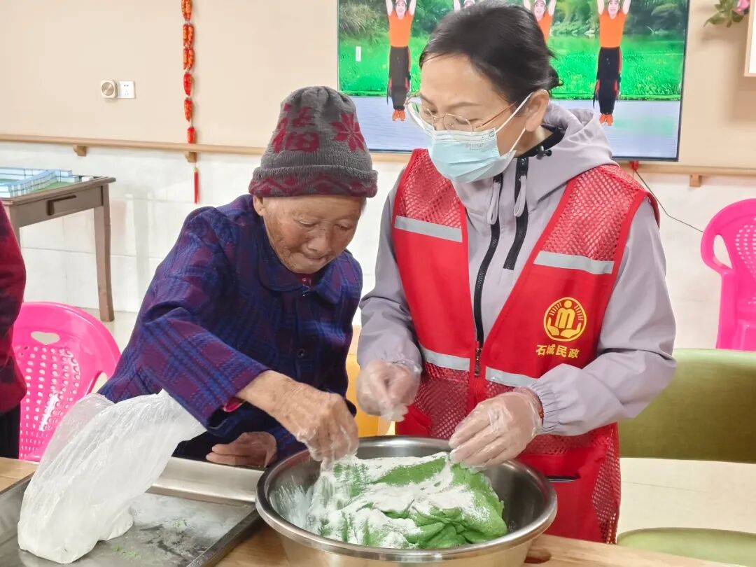 清明将至,艾草清青,4月2日,在石城县民政局的指导下,石城县厚德公益服务中心(简称:厚德公益)联合琴江镇民政服务站,在第一养老石城护理院开展了 “巧包艾米果·温情暖夕阳” 老年人志愿服务活动。