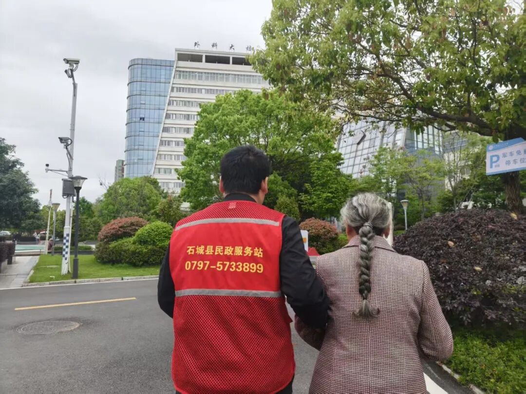 评级当日,社工提前为陈奶奶领取并整理好评残所需的全部表格资料,随后全程护送陈奶奶前往石城县人民医院。考虑到陈奶奶视力不佳的情况,社工全程寸步不离,耐心搀扶引导,协助完成挂号、就诊登记等各项流程,并细致向医生介绍老人的日常生活与身体状况。