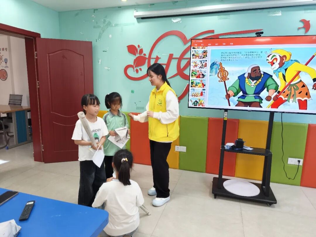 “情景演绎” 就是全场的高潮。社工邀请孩子们上台,把《三打白骨精》的故事“演”出来。孩子们毫不怯场,瞬间入戏——“孙悟空”举起金箍棒威风凛凛,“白骨精”扭来扭去诡计多端,“唐僧”双手合十满脸慈悲……