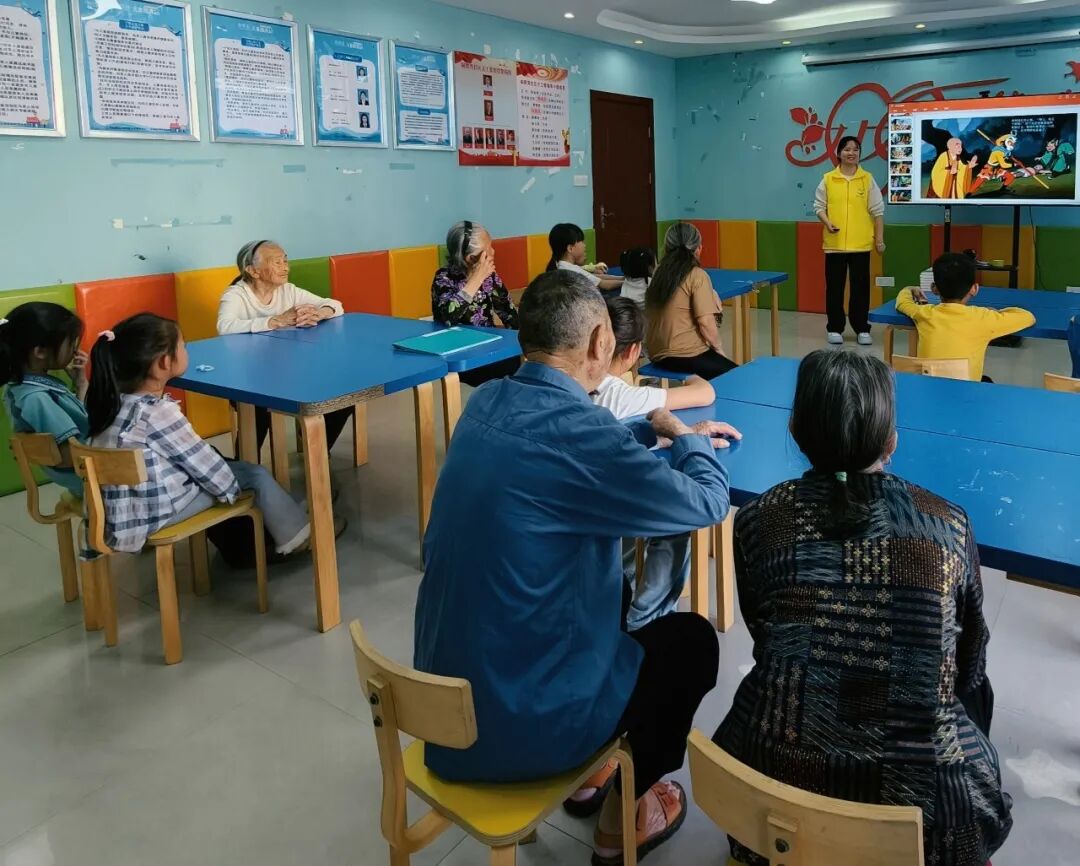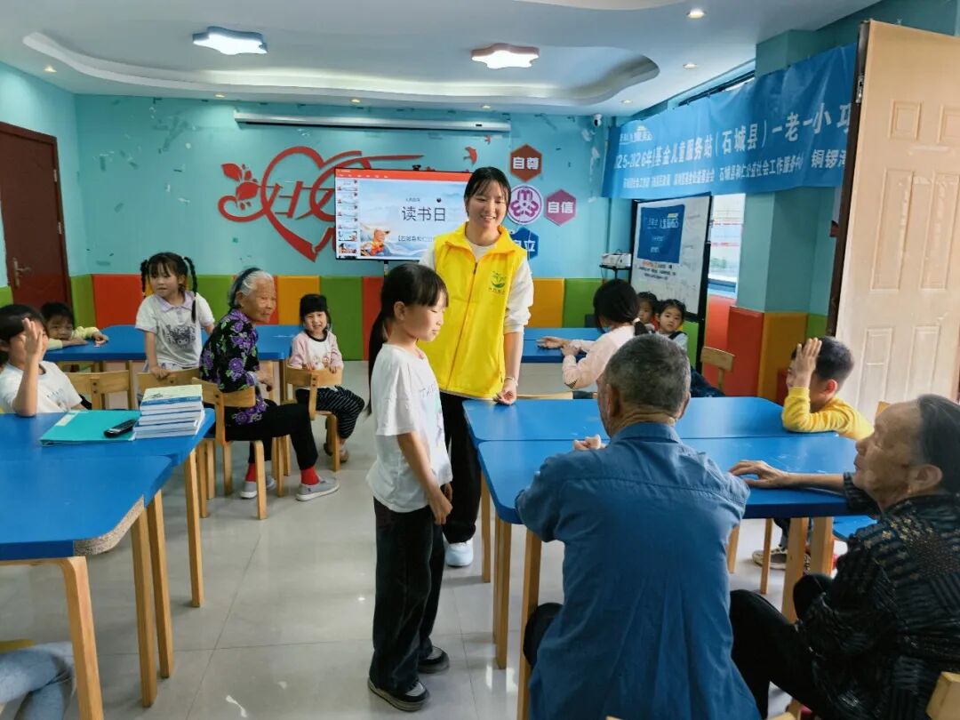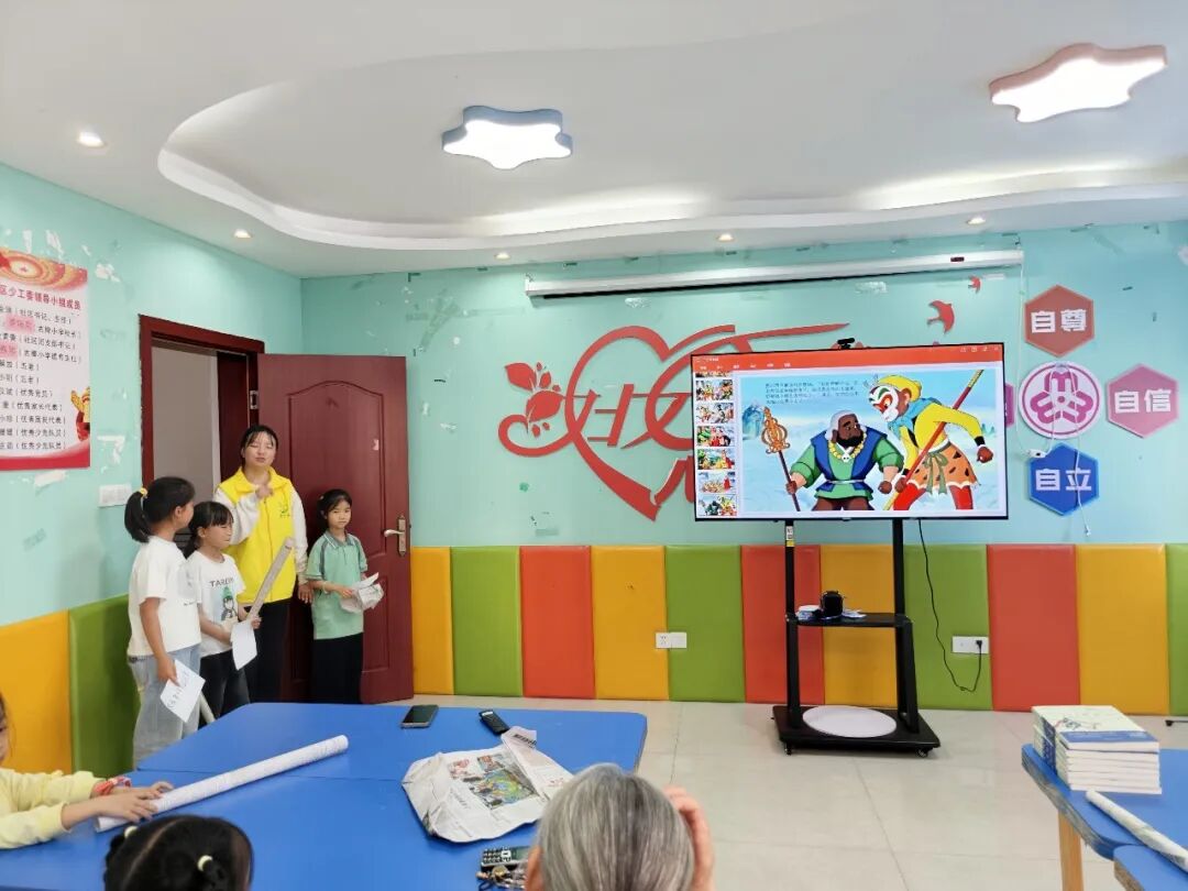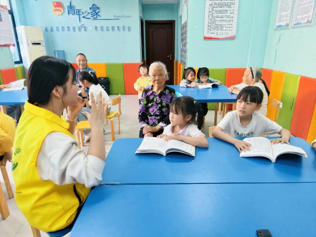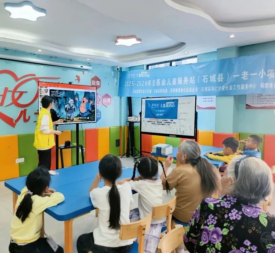 热场结束,我们拿出了《西游记》图书,分发给在场的儿童和老人。孩子们自告奋勇,当起了“小朗读者”。一字一句,认真念给老人听。那一刻,书页里不只有唐僧师徒的故事,更有了陪伴的温度。