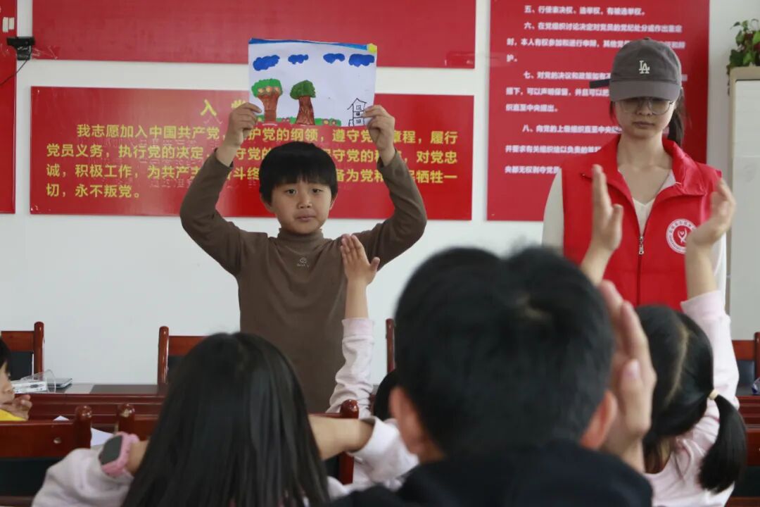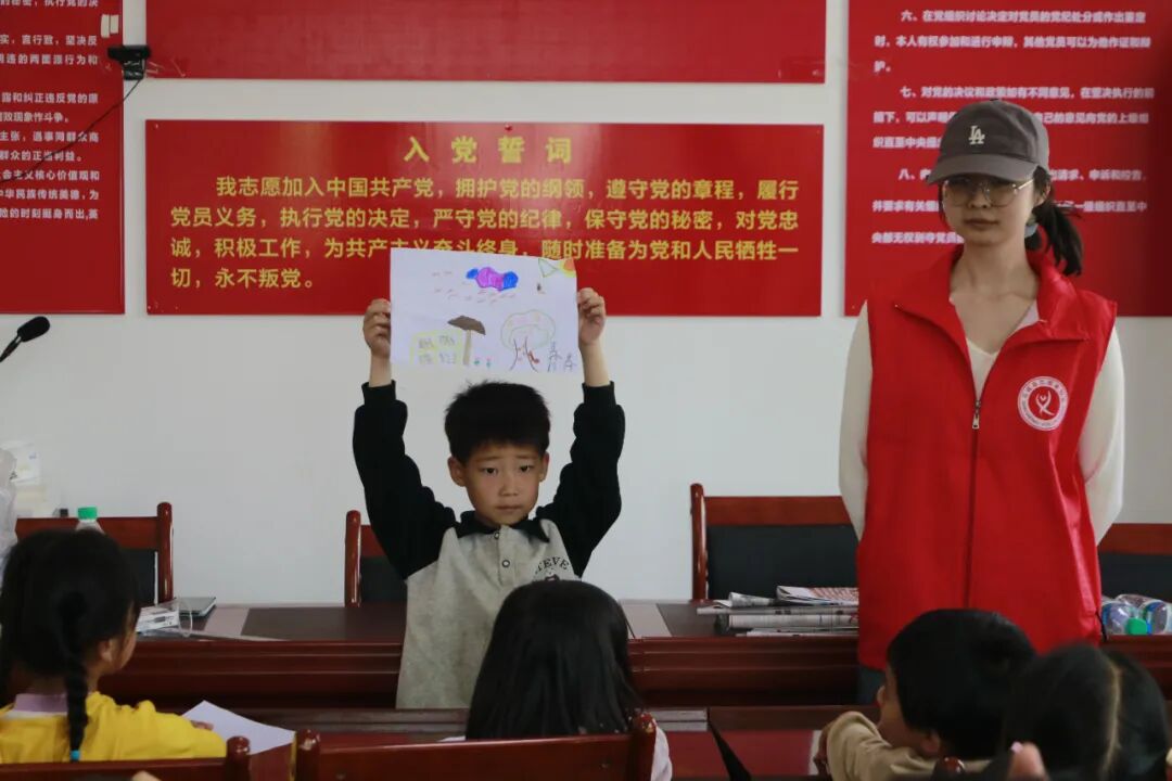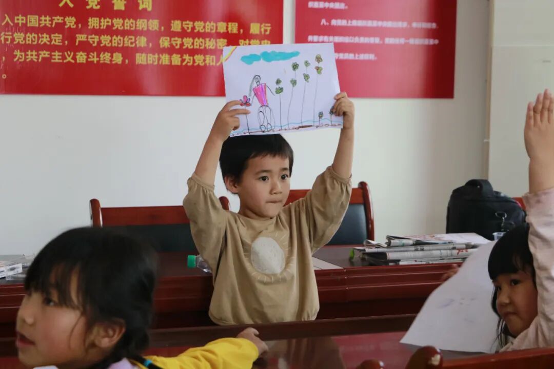 儿童踊跃展示画作,并讲述画里的故事。“我画的是和新伙伴一起看到的景象。”一位孩子说道。朴实的语言背后,是活动中萌发的新友谊。