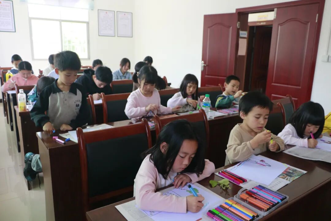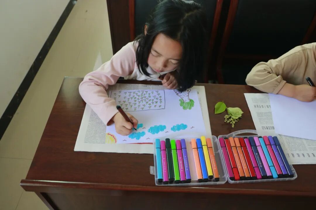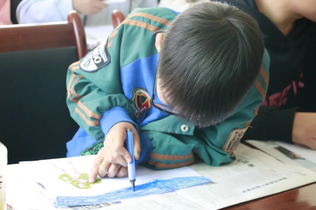 没有模板,只有自由表达。绿色的田野、蓝色的天空、伙伴的身影……每一幅画都是个人观察与集体记忆的融合。画笔在传递,色彩在交融,儿童在共同创作中,继续巩固着刚刚建立的连接。